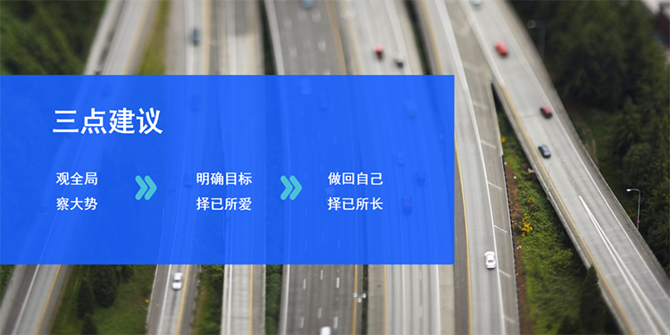 刚刚讲的是宏观层面的大环境,大学生作为个体,应该如何找到切合自己的开展之路呢?我有以下几点建议: